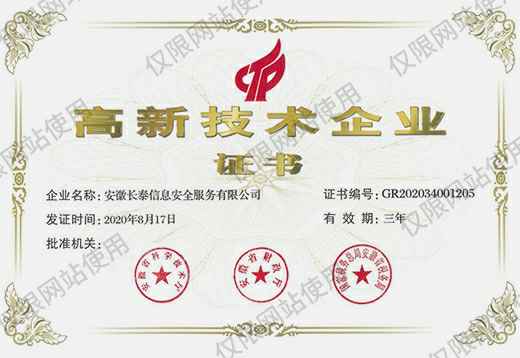高新技术企业证书